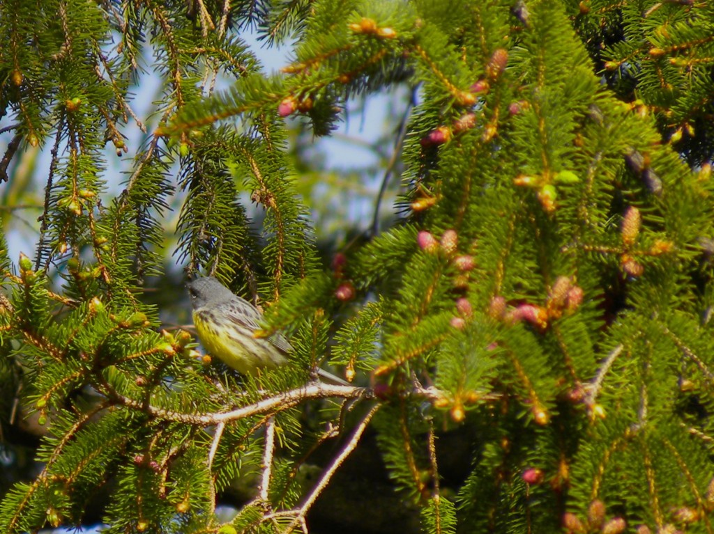 Today at the bird observatory a strong south wind seemed to repress most bird life, although in the shelter of the creek valley there was plenty to listen to; mostly resident birds on territory. A Blue–winged Warbler was doing the rounds of its property calling its inhale-exhale “zzzzz- buzz” from hard-to-find perches. Also Eastern Wood Peewees, Great–crested Flycatchers and Red–eyed Vireos were patrolling their treetops. A Gray Catbird had me fooled for a while with its imitation of a Black-capped Chickadee, and the longer I listened to him the more I could pick up phrases from the songs of Robins and Blue Jays. An unseen bird was calling softly from low in the forest, it’s repetitive call was “pit sa,- pit sa “ and my conclusion was a probable Acadian Flycatcher. But only probable because missing was the explosive and insistent tone that marks an Acadian Flycatcher. Oh well.