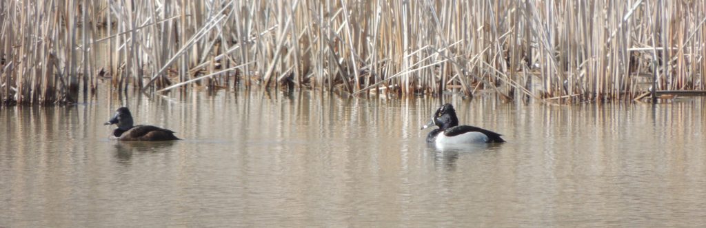 With a quick binocular scan I could see dozens, maybe hundreds of birds and, mysteriously, one unusually low in the water as if it had wandered out of its depth into too deep water and had decided to stop and think about it for a while. I couldn’t make out what it was, surely too low for a shorebird most of whom stay well up on long legs, and not a duck, who are larger and always buoyant; this mystery bird seemed to be anything but buoyant.