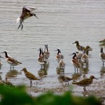 30 November 2014. On a mild, yet monochromatic, day I walked various sometimes-birdy stretches of the perimeter of the large industrial harbour that dominates our local geography. It was warm enough but, the bright orange berries of Bittersweet notwithstanding, I was quite conscious of how much natural colour had drained away. It was, as I noted above, a monochromatic day.