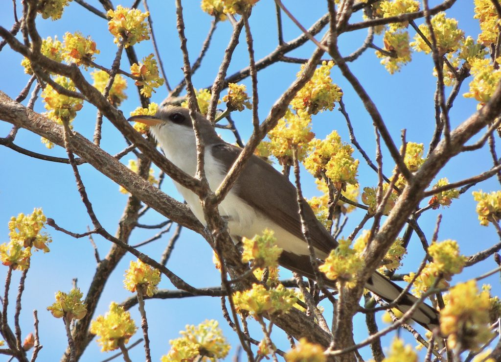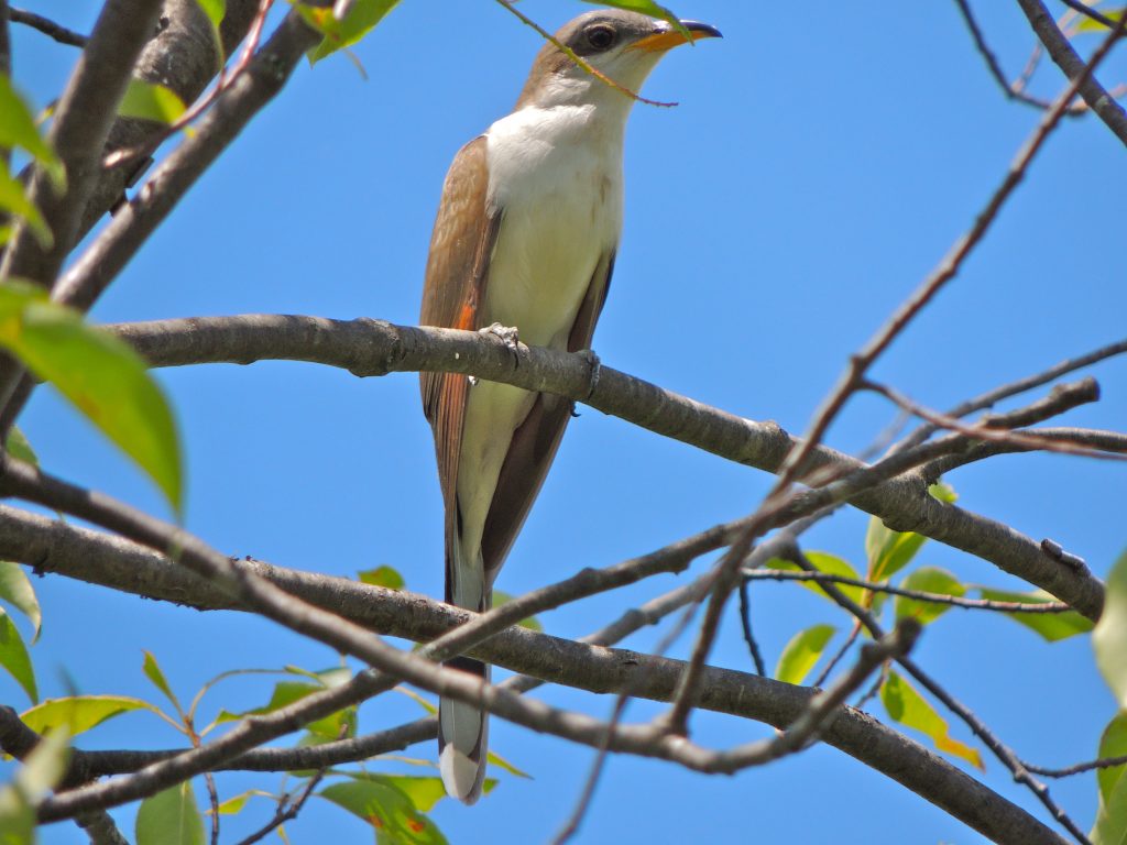The old-world Common Cuckoo (of cuckoo clock association) is well-known as a nest parasite. Our two, the Yellow-billed, and the Black-billed, are usually conscientious parents, building a nest and raising a brood, but both species are known to sometimes practice brood parasitism, although it is discretionary and science has yet to figure out what triggers the parasitic urge. Typical breeding is apparently correlated with an abundant local food supply and once started, the breeding cycle is extremely rapid, and requires only 17 days from egg-laying to fledging of young. Incredibly, almost explosive feather sheaths allow nestlings to become fully feathered within two hours.