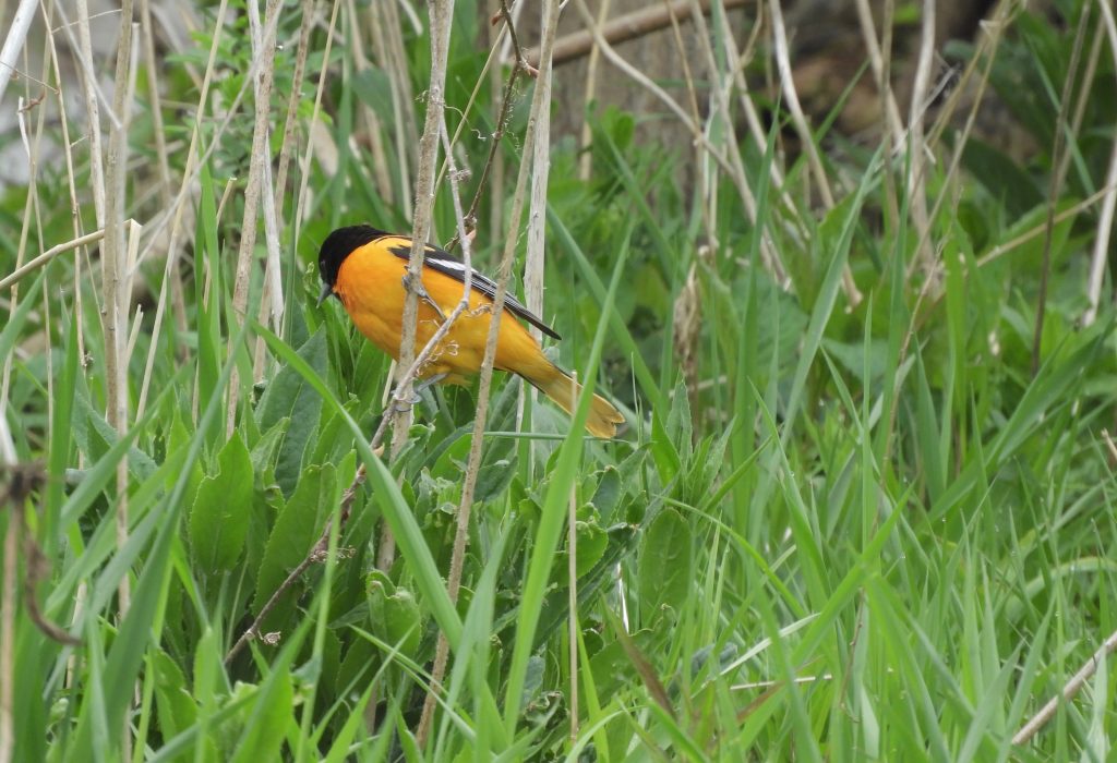 There were other birds in the park, each in its own niche: Nashville, Yellow, and Chestnut–sided Warblers, Warbling Vireos, Northern Parulas and Baltimore Orioles. My Birds of the Day though were the PalmWarblers, not the showiest warbler, but colourful nevertheless, and one of the first of the family to arrive each spring. They are almost entertaining in the way they bob their tail as they walk, picking for little insects to fuel the next leap northward. Their journey is about two-thirds done. They have come from the Gulf Coast regions of the U.S and are heading to the bogs and fens in the boreal forests, a few hundred kilometers to go. I took many photos and, as always deleted most of them but I’ve added a few of the best.