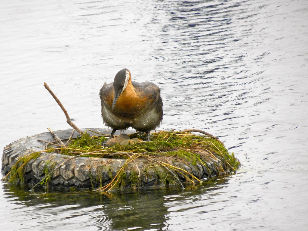 Previous ImageNext Image Red-necked Grebe at nest. Red-necked Grebe . She had just returned to the nest.